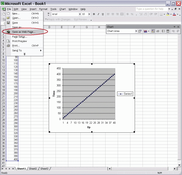 Step 4. Click Finish. You now have your chart. You need to save it as an image file so it can be inserted into your webreport. Select Save as Web Page, then choose a sensible place on your computer to save it.