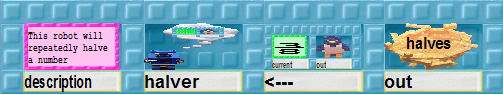 Repeatedly divides a number by 2, and sends the result to a nest.