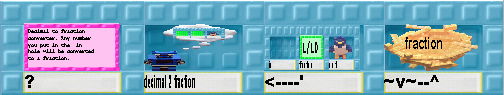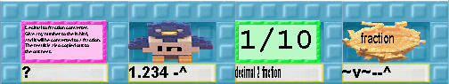 The robot types a "=" over the incoming number, and drops it on a fraction.